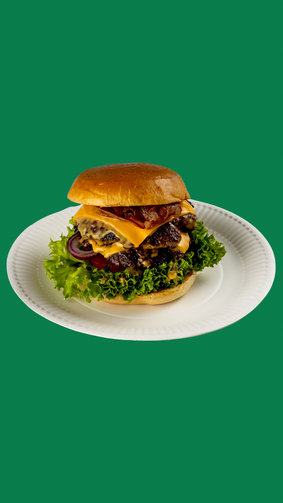 Smash Patty, Tomaten, Gurken, Zwiebeln, Lollo Bionda Salat, Burger Sauce