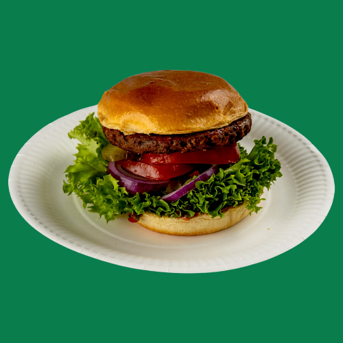 Vegetarisches Gemüse Patty, Tomaten, Gurken, Zwiebeln, Lollo Bionda Salat, Burger Sauce